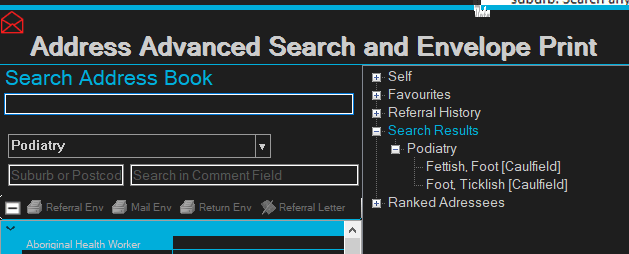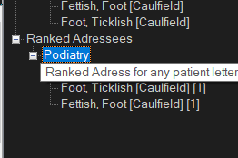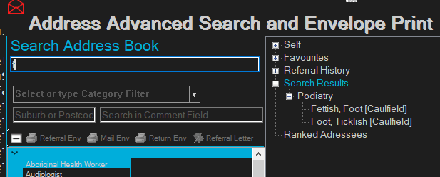 When selecting a category, the tree is populated with the most referred addressees within the practice. This is very useful for new doctors joining the practice with no or little knowledge of local resources.
