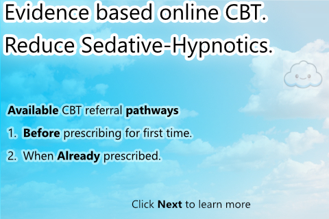 Provides GP's with access to a popular medical treatment for insomnia (Online CBT was developed and is used extensively overseas). Can be used as initial treatment for insomnia (before providing hypnotic script). Can be used to help reduce patients reliance on existing hypnotic medications.